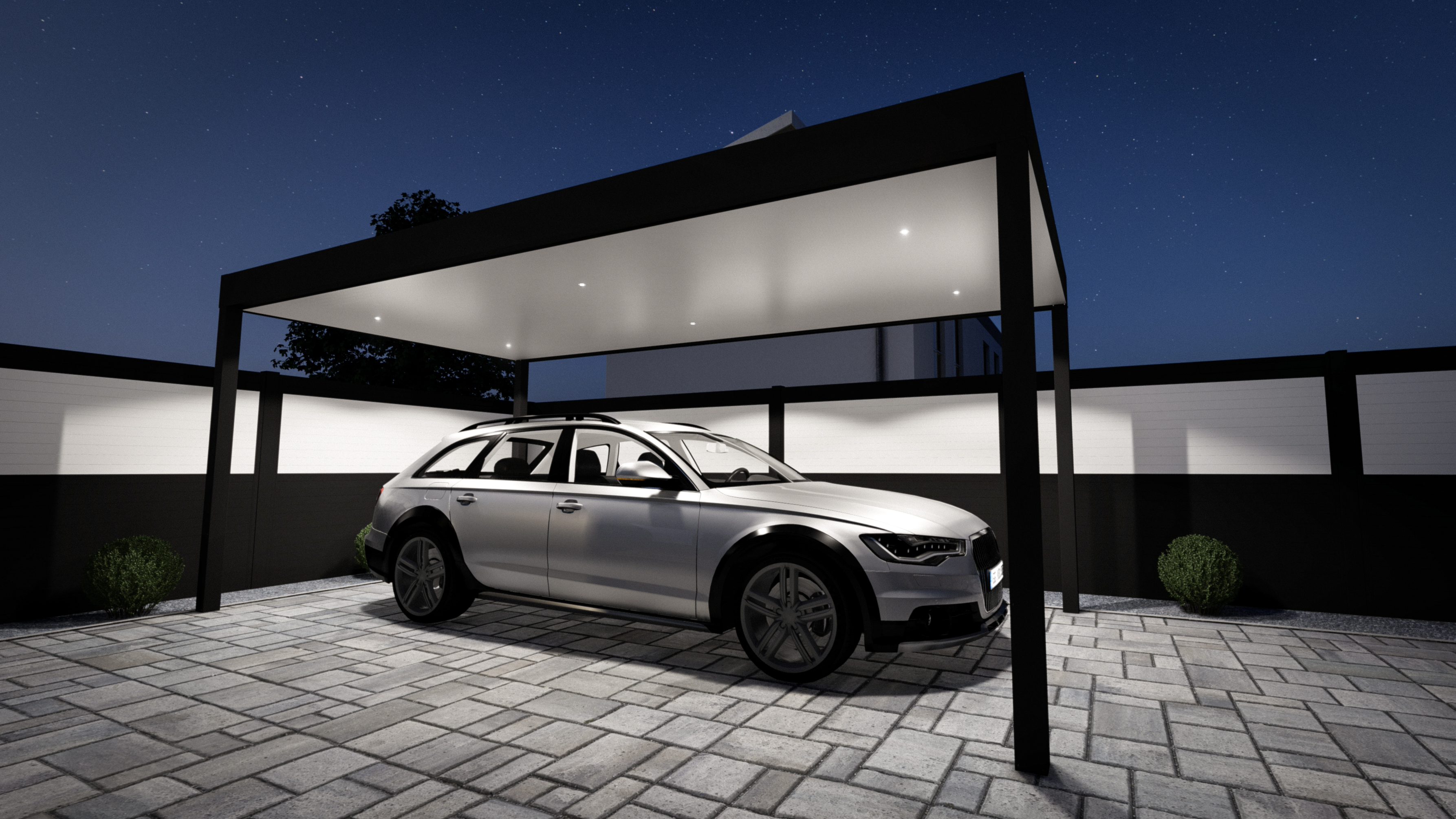 Als Option kann der Carport Alpha mit moderner LED-Beleuchtung erweitert werden.