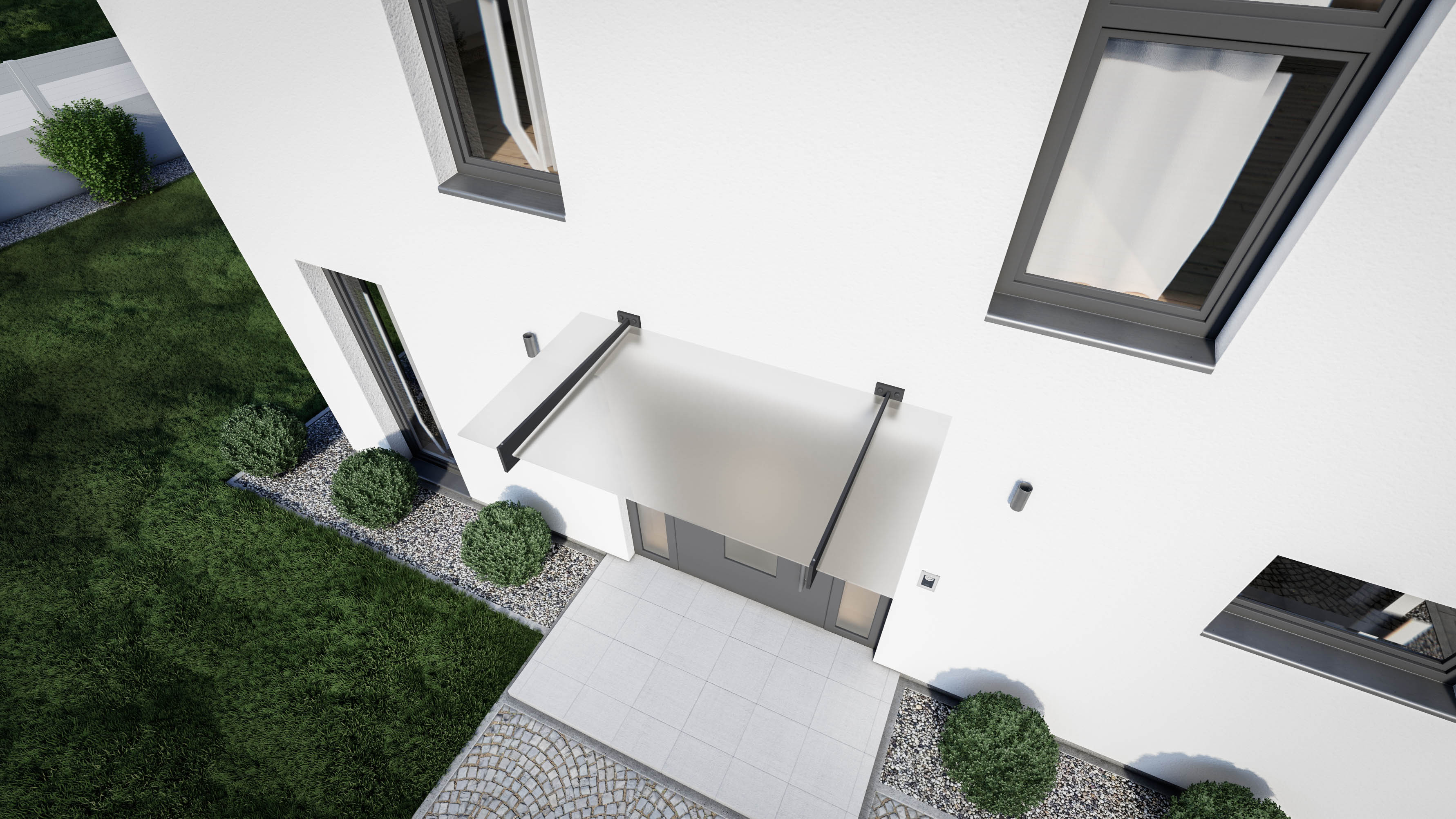 Die kleinste Dachvariante bietet zuverlässigen Schutz vor Regen, Wind und Schnee direkt vor Ihrer Eingangstür. Auch bei dieser Variante sind die Eindeckungsmöglichkeiten in VSG (Verbundsicherheitsglas) und Polycarbonat verfügbar, je nach Ihren Wünschen. Eine besonders beliebte Option ist die integrierte LED-Beleuchtung, die für zusätzliches Licht und eine moderne Atmosphäre sorgt.